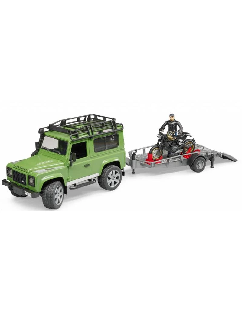 Bruder 2598 – Landrover Defender met aanhanger en Ducati motor en berijder