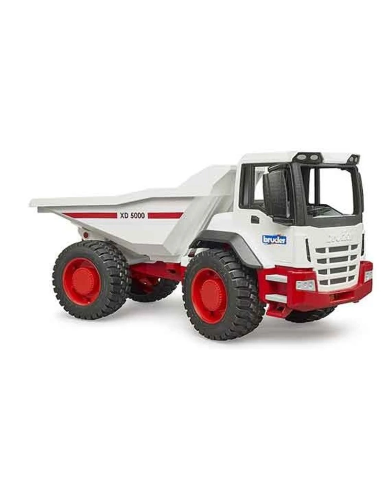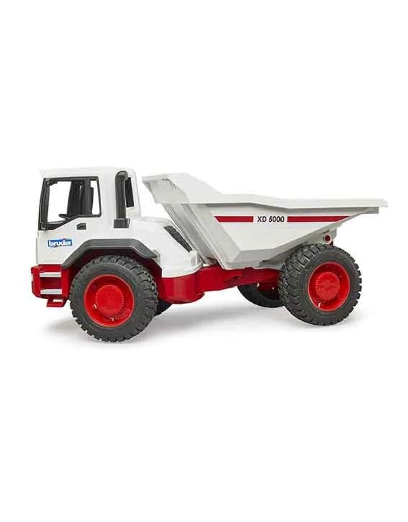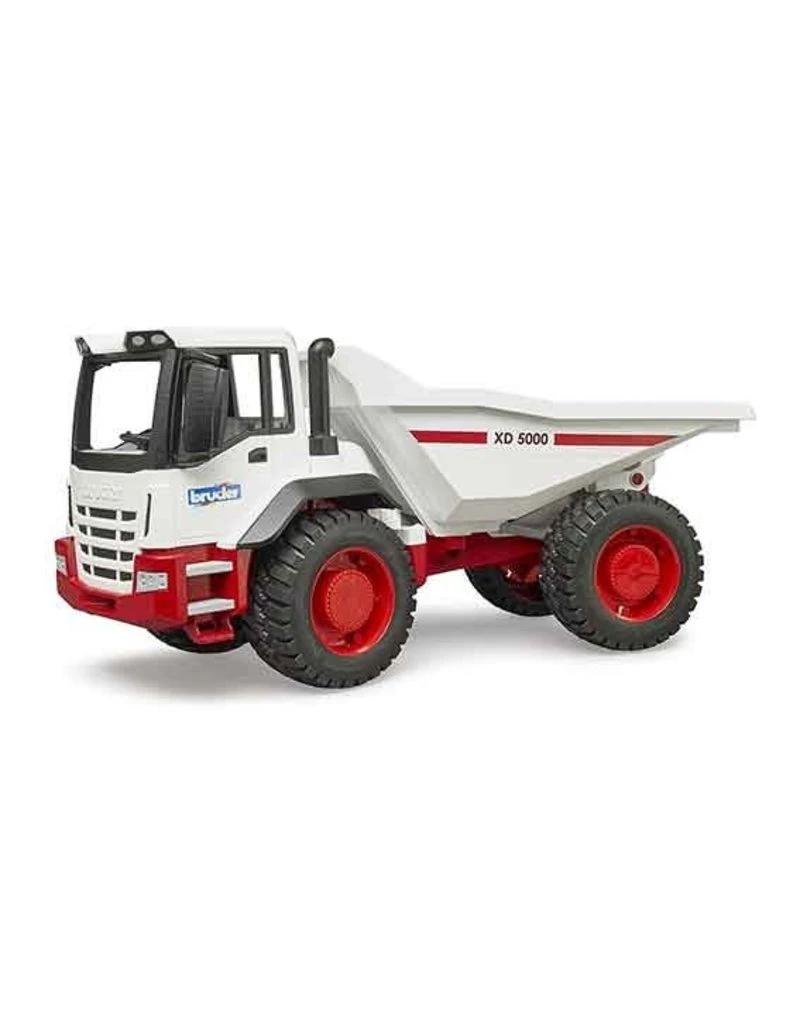 Eenvoudige dumper om zand of gras te vervoeren. Gemaakt voor jongere kinderen want het model is eenvoudig en robuust. De witte speelgoed dumper heeft knikbesturing en een bak die kan opkippen.