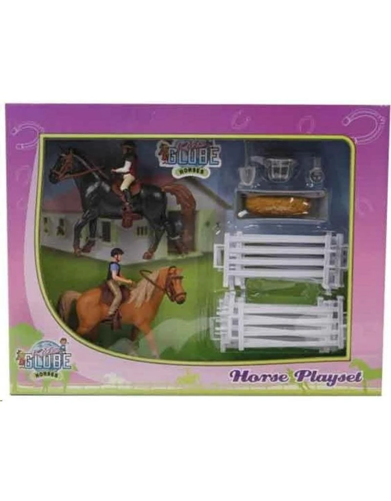 Kids Globe 640072 – Speelset: 2 paarden met ruiters en accessoires 1:24 (geschikt voor SCHLEICH)