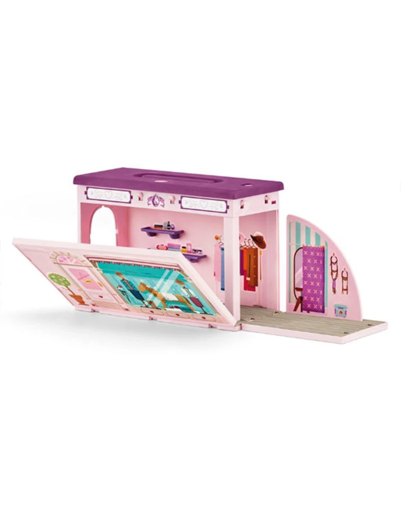 Kids Globe 610210 – Paardenhoekstal Met3 Boxen En Berging1:24 Wit/roze (geschikt Voor Schleich)